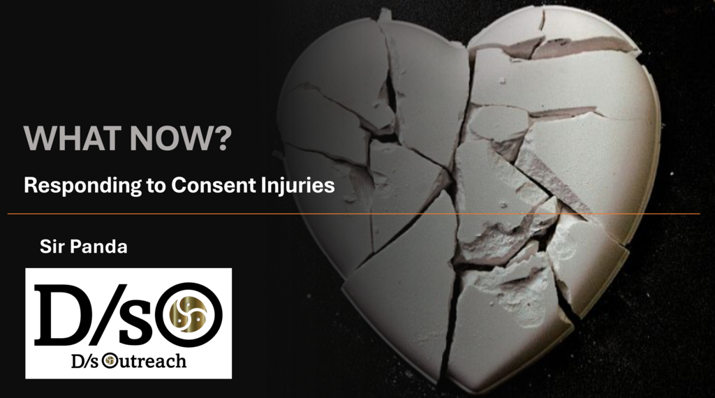 Let's look at consent and how to secure it - then goes beyond to discuss how to we react when a consent injury impacts us as a third party: a friend, a stranger, or a host. We'll cover the language of broken consent, and how to help those who have been harmed - without making things worse. Examine how to gather facts, apply sound judgement, and evaluate consequences such as apologies, punishments, and restorative justice. Recording available for ticket holders.